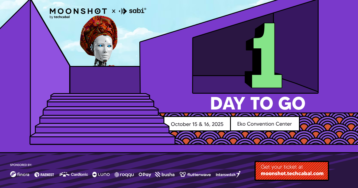 - Countdown to Moonshot 2025. Africa’s biggest gathering of dreamers, doers, and disruptors returns on October 15 & 16, 2025. From startup founders to policy shapers, everyone who’s building the continent’s future will be there. Secure your spot today and be part of the movement.